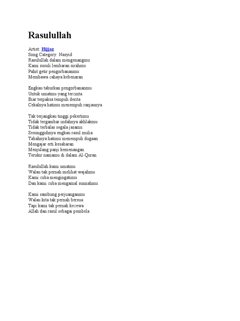 lirik lagu rasulullah hijjaz